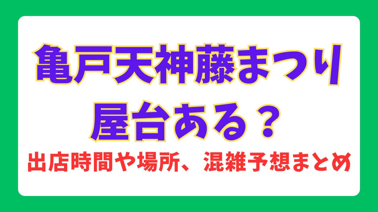 そこで今回は、2026年の亀戸天神藤まつりについて、屋台の有無から混雑の傾向まで、私なりの視点も交えながら分かりやすくまとめました。